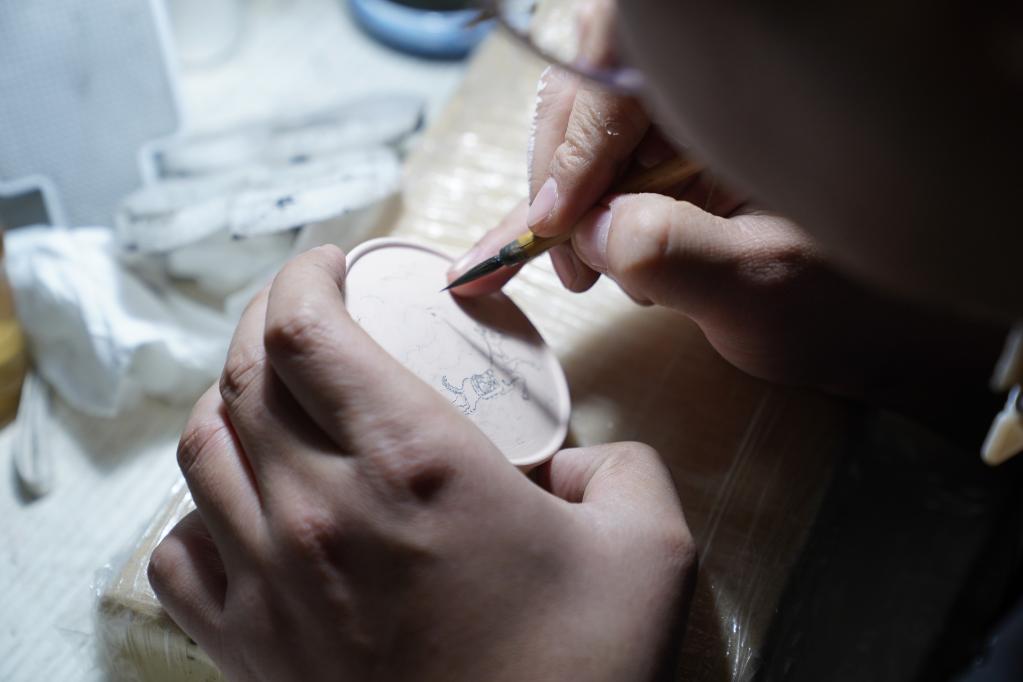 江西景德镇的青年匠人在创作青花瓷(3月11日摄)。新华社记者周密摄
