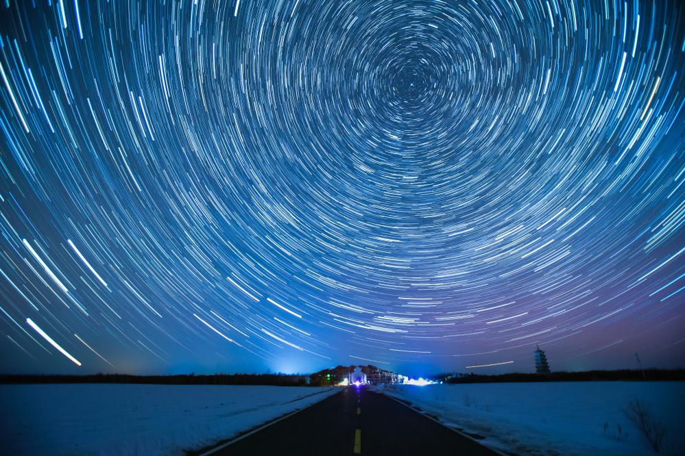 这是3月23日凌晨在黑龙江省嘉荫县拍摄的绚丽极光(堆栈合成照片)。新华社发(李绍军摄)
