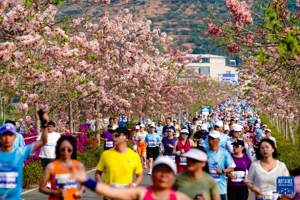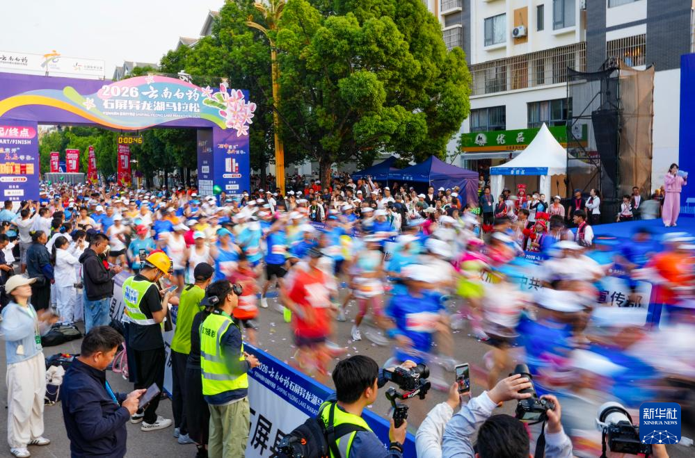 4月19日,2026年云南石屏异龙湖马拉松在云南省红河哈尼族彝族自治州石屏县异龙湖畔鸣枪开跑。赛事设置马拉松和半程马拉松两个项目,吸引全国各地约6000名选手参赛。