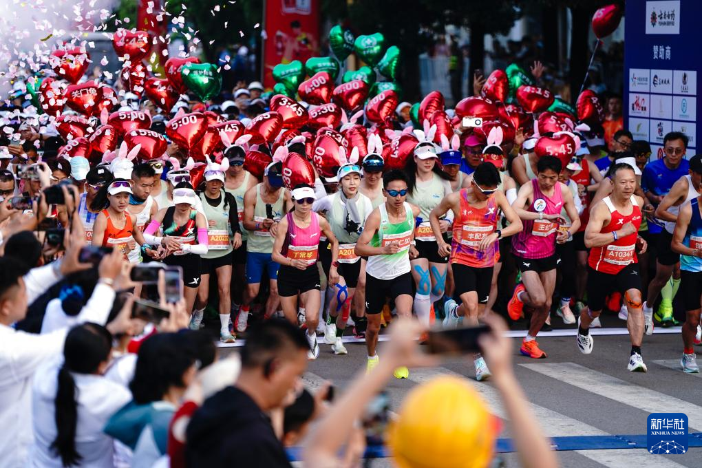 4月19日,参赛选手从起点出发。新华社记者 陈欣波 摄