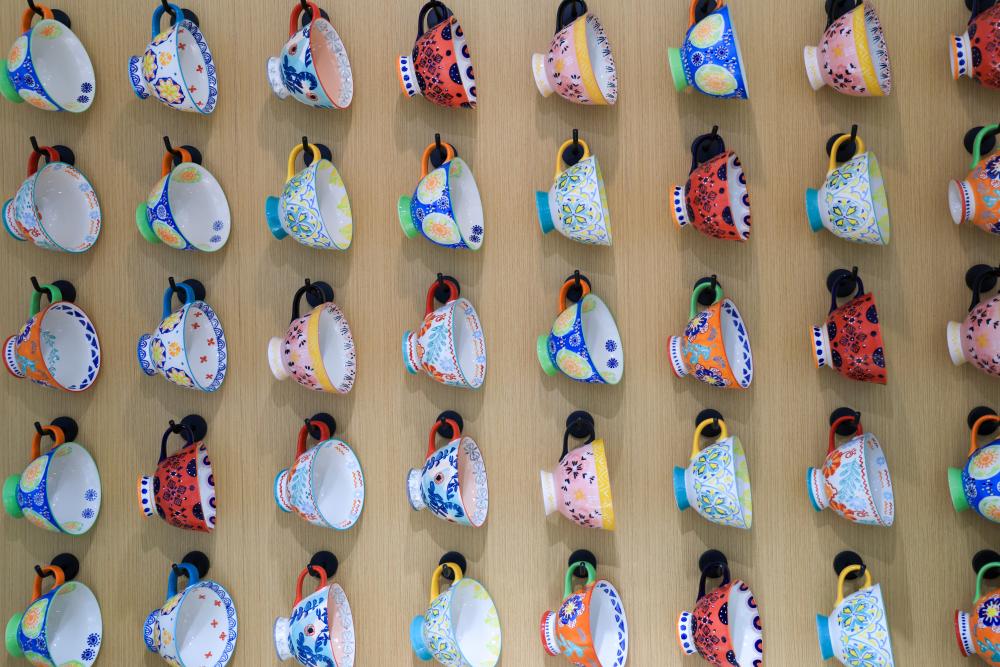 图为在潮州市松发陶瓷有限公司展厅拍摄的手绘杯。新华社记者 毛思倩 摄