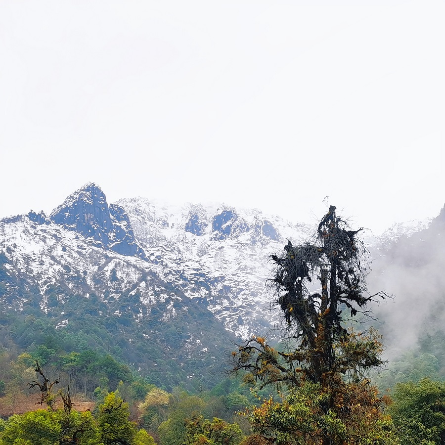 石月亮乡亚坪景区的雪峰(4月2日摄)。娜玉梅 摄